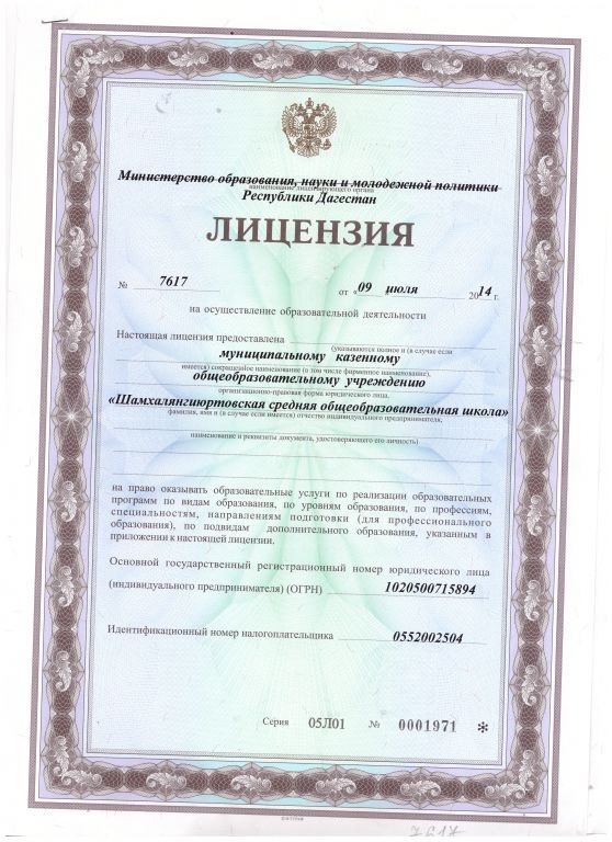 | Полное наименование образовательной организации* | Муниципальное казённое общеобразовательное учреждение Шамхалянгиюртовская СОШ |